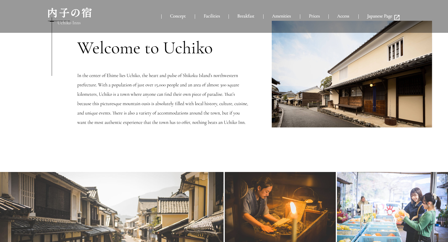 英語版サイトは単に日本語をそのまま翻訳するのではなく、敢えてランディングページ仕様に。外国の方に刺さる「内子の宿」の魅力を掬い上げ、日本語版とは訴求ポイントも変えて編集し直しています。日本人が宿探しで重視するポイントと、外国人の方が重視するポイントは異なることを前提に制作しました。