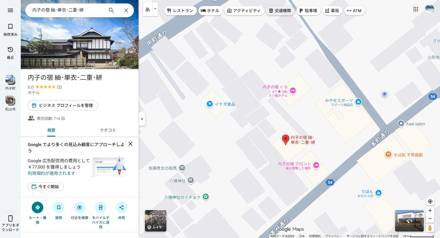 複数の一棟貸しの宿を有するため、ひとつひとつのGoogle ビジネス プロフィールを整備し、公式ウェブサイトへの動線作りを行っています。カバー画像には今回のウェブサイト制作で撮り下ろした写真を用いることで、クライアント様に手を煩わせることなく一気通貫で整備対応させていただきました。