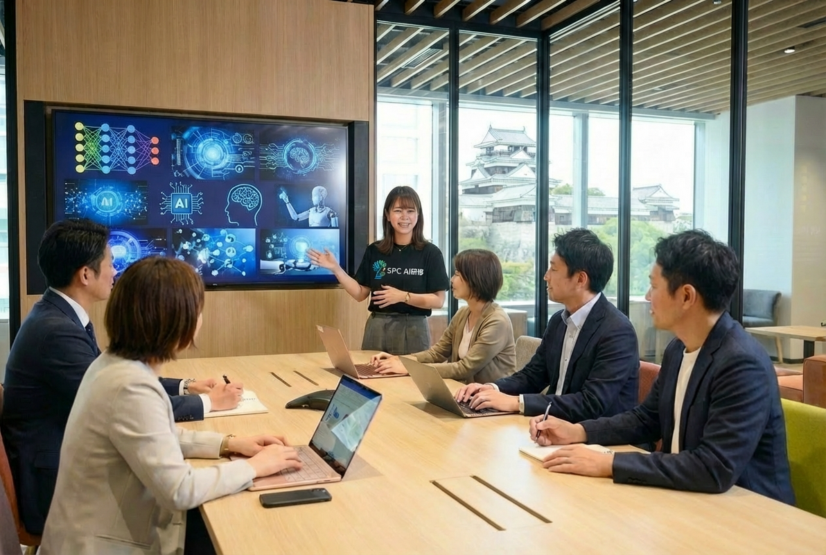 愛媛県内の企業を対象に、株式会社KANNONと連携して「企業別・事業別にカスタマイズしたAI人材育成研修」を提供しています。株式会社KANNONのAI講師は、これまで累計50社以上の研修実績を誇り多くのノウハウを持っています。弊社が提供する研修は、各企業様が抱える課題やニーズに合わせて内容をカスタマイズする点が大きな特徴です。かつ、知識をインプットすることをゴールとせず、実際の業務に落とし込んで実用いただくところまでを研修時間内で目指しています。
