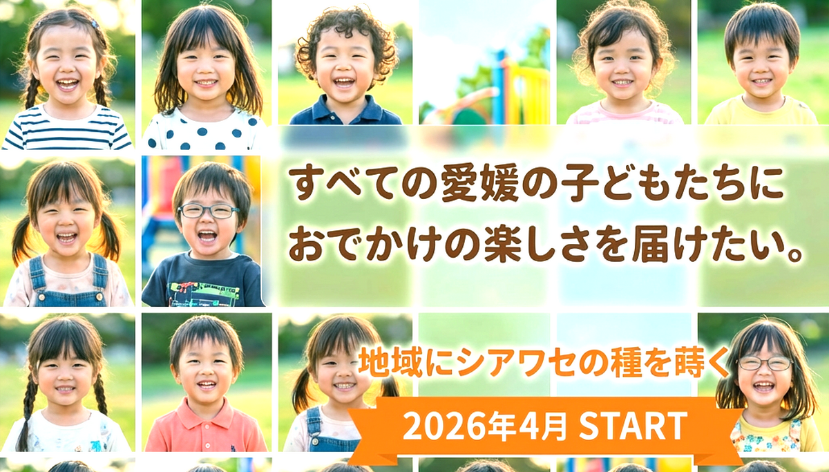 愛媛県の未来を担う子どもたちとその家族を対象とした包括的な子育て支援プロジェクトです。「おでかけの楽しさを届け地元愛を育み、人口流出を食い止める」ことをミッションに掲げ、デジタル・アナログ・リアルを組み合わせた3つの活動を展開します。