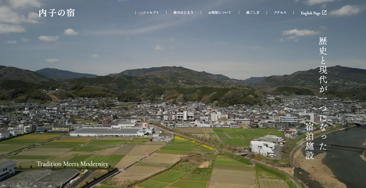ありがちな「翻訳機能を用いた英語版ページ」ではなく、ネイティブのディレクターをチームに加えて英語版サイトを制作。外国の方から見た「内子の宿」の良さをコンパクトにまとめたランディングページにしました。