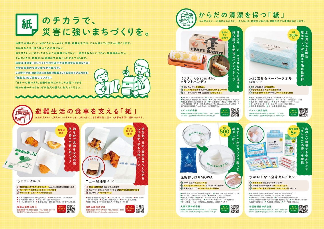 「紙のチカラで災害に強いまちづくりを」をコンセプトに、防災用品ハンドブック「yuiitsu」も制作。
