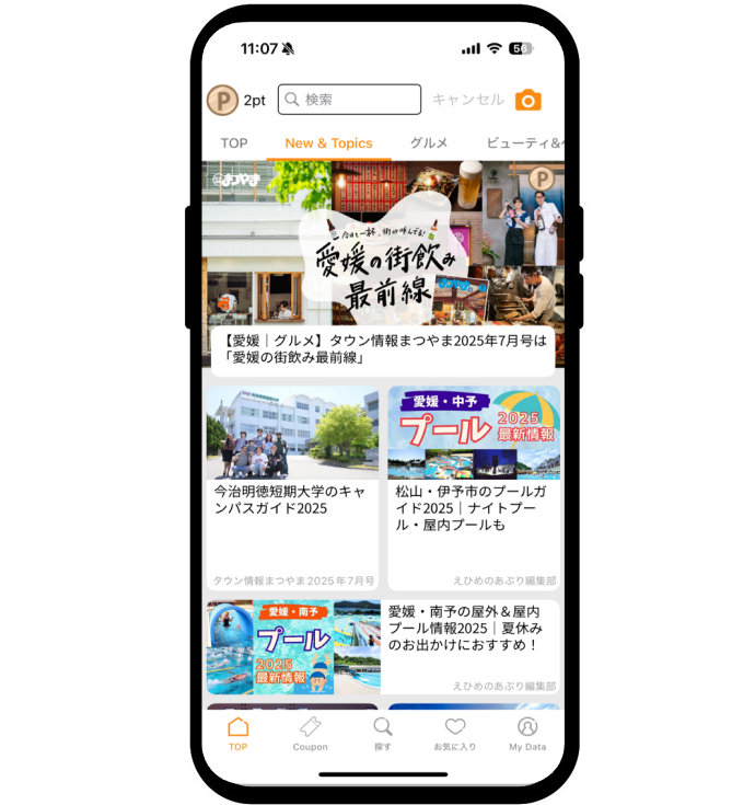 えひめのあぷりは2025年7月にアップデートし、ログインポイントや記事閲覧ポイントが貯まる機能が加わりました。
